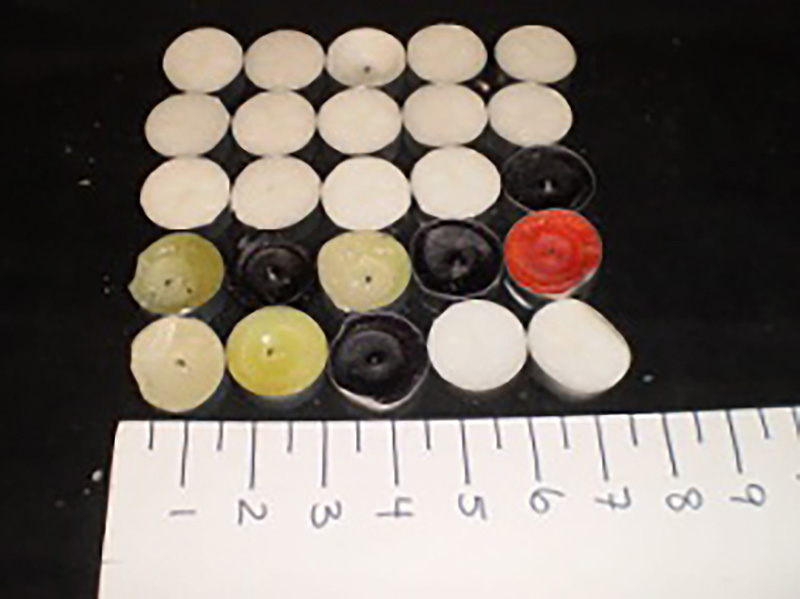 Bag o’ tea lights, white, black, red, green