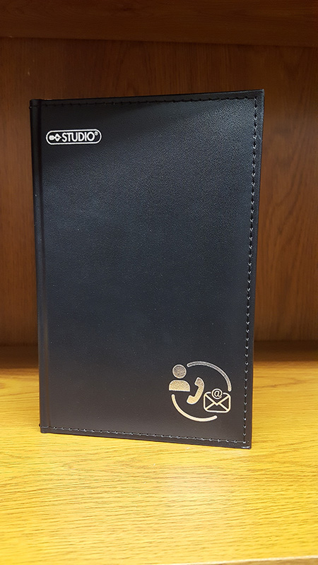 Black Address Book, pages torn out, large amount of pages missing, cover still usable