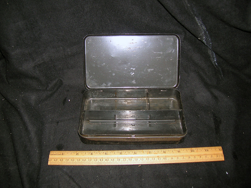 Black tin with “Assorted Spoons” Etched on Lid