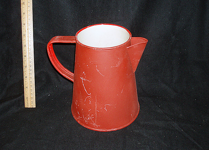 / Coffee pot, cream/red, w. lid