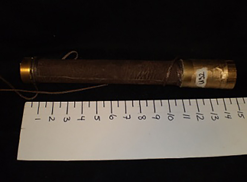 Looking glass, brown leather with gold trim