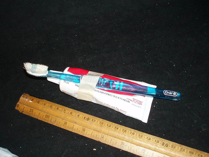 Smokers toothpaste and brush (brush thrown out b/c it was gross)
