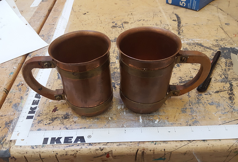 Tarnished copper steins
