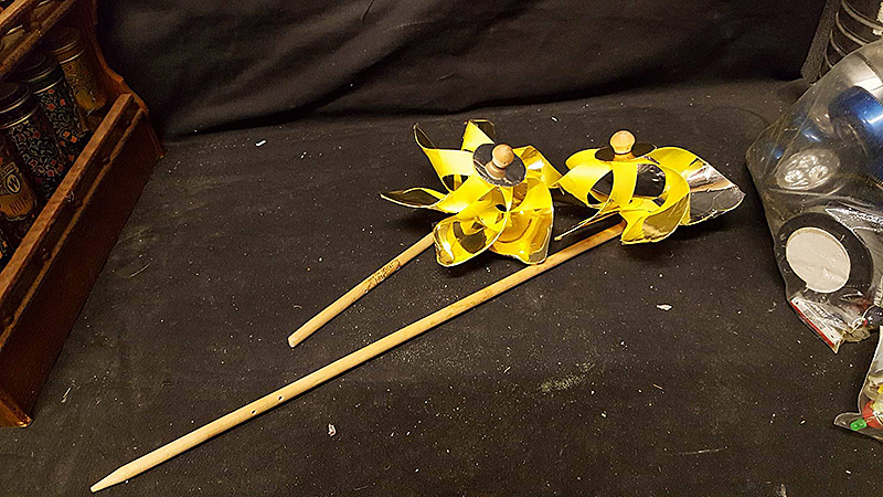 Yellow And Metalic Pinwheels. One Long Stem and One short Stem